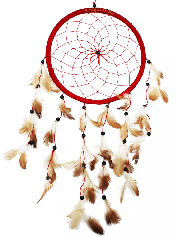 Álomfogó (álomőrző, álomcsapda) 22 cm piros tollas