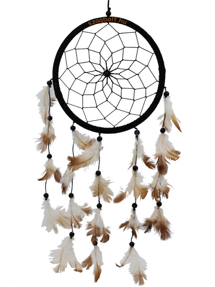 Álomfogó (álomőrző, álomcsapda) 16,5 cm sötétbarna, tollas